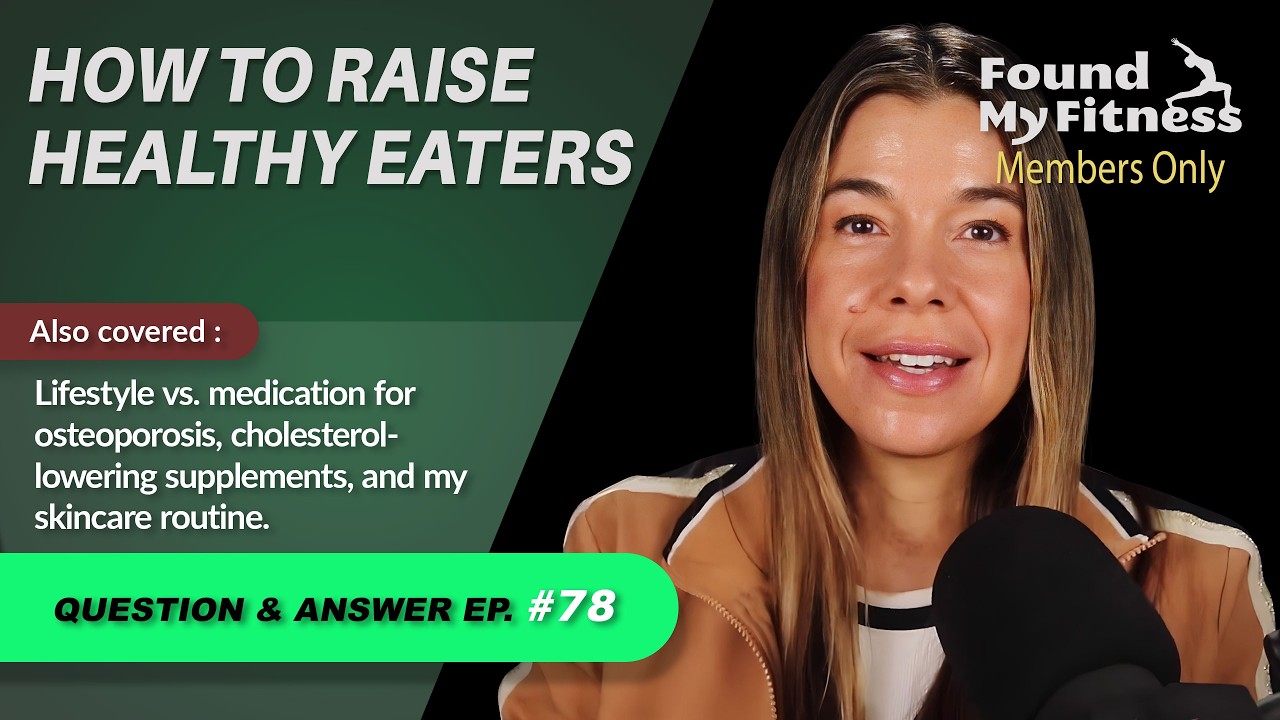 Dr. Rhonda Patrick discusses child nutrition, osteoporosis, cholesterol-lowering supplements, her skincare routine, and fasting versus prioritizing protein.