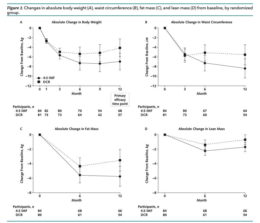 While body weight and cardiometabolic risk factors improved in both groups, intermittent fasting was more effective for improving body weight, BMI, insulin sensitivity, and fat mass than daily calorie restriction.