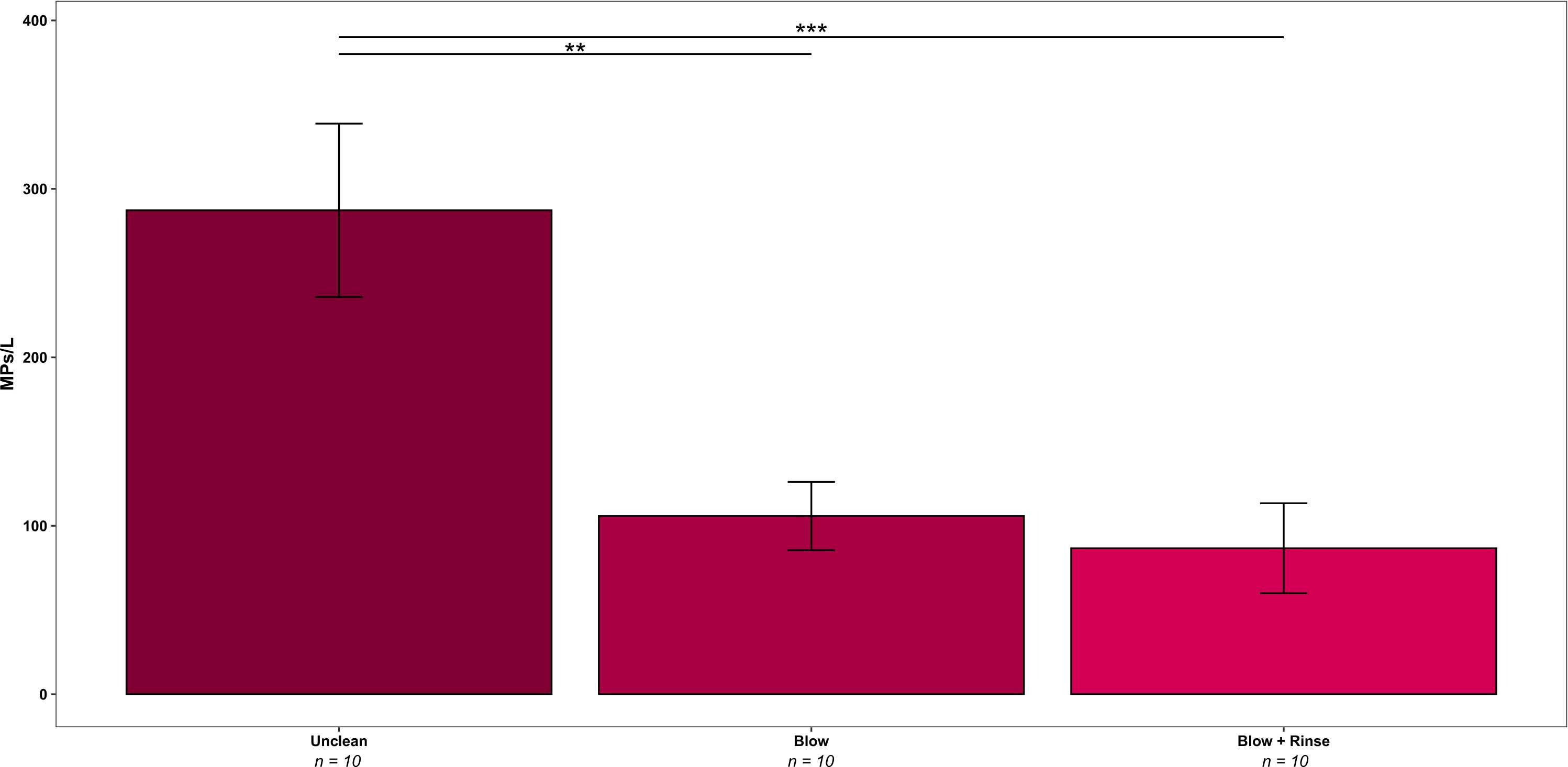 - Next, they treated the caps by blowing them clean with air, a process that reduced contamination by 63% (to 105.8 MPs/L), significantly less than the untreated caps.