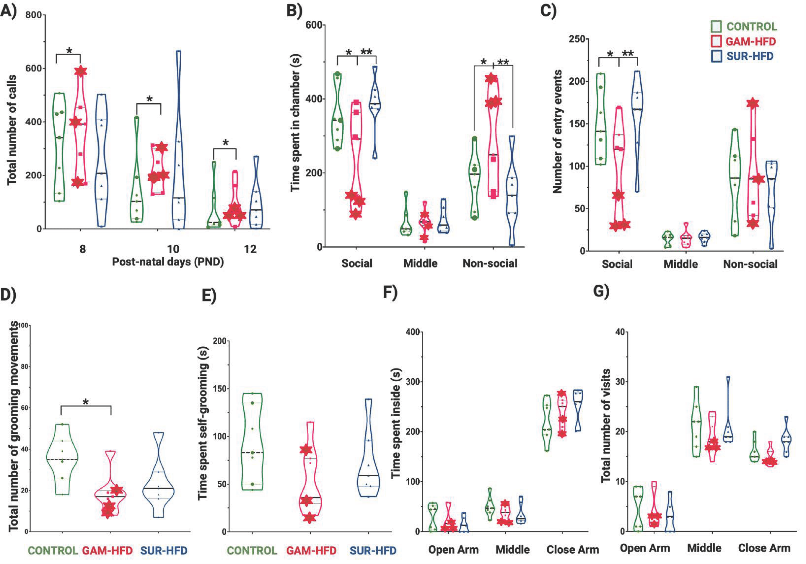 After birth, offspring were monitored for 41 days, undergoing a battery of behavioral tests that reflect the core domains used to diagnose autism spectrum disorder: sociability, communication, and repetitive behaviors.