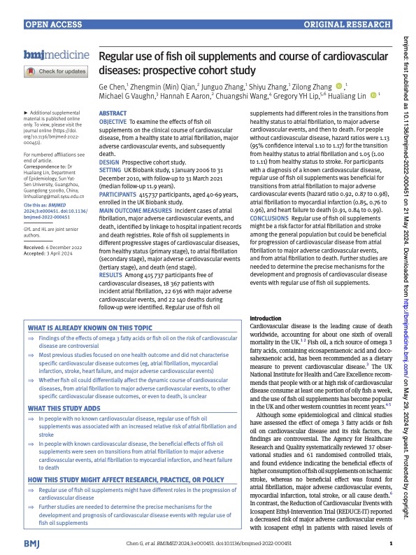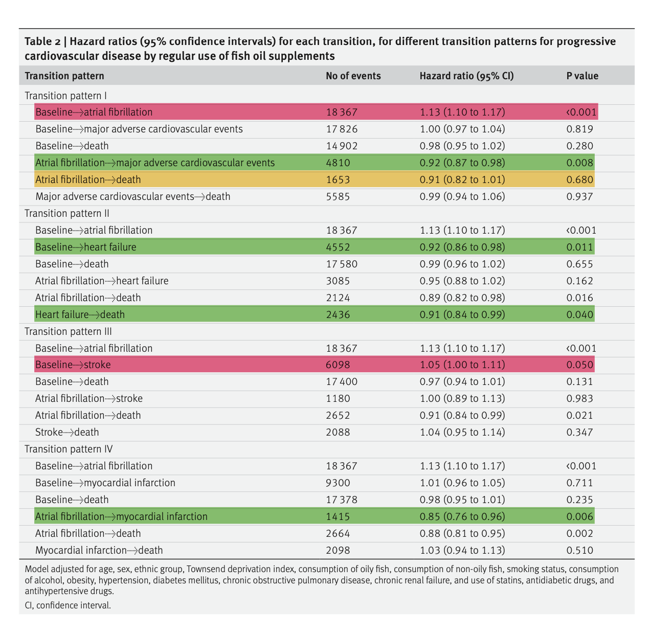 The results of this study would suggest that as a primary prevention strategy, fish oil supplementation may not be useful and may in fact be harmful. But as a secondary prevention strategy among people who have developed early-stage or late-stage cardiovascular disease, fish oil use may provide protection.