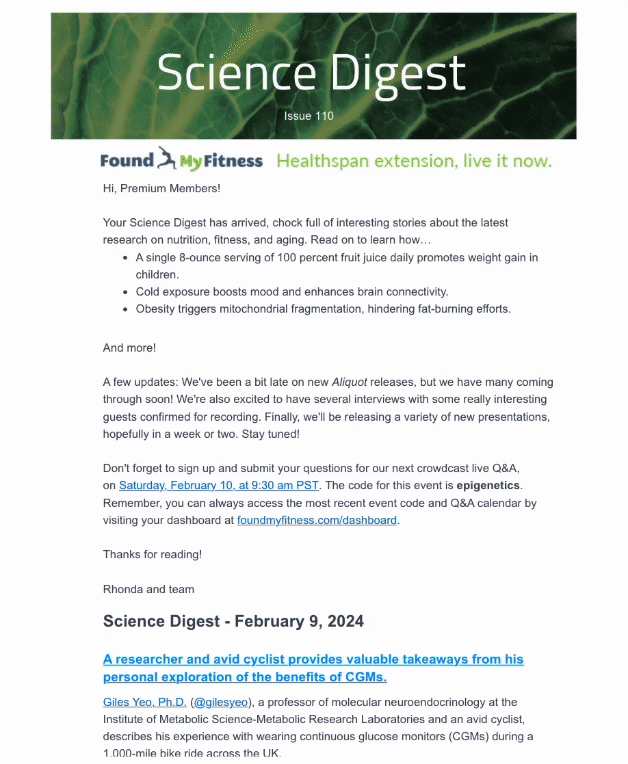 By becoming a member of FoundMyFitness premium, you'll receive the Science Digest every-other-week covering the latest in my exploration of recent science and the emerging story of better living — through deeper understandings of biology.